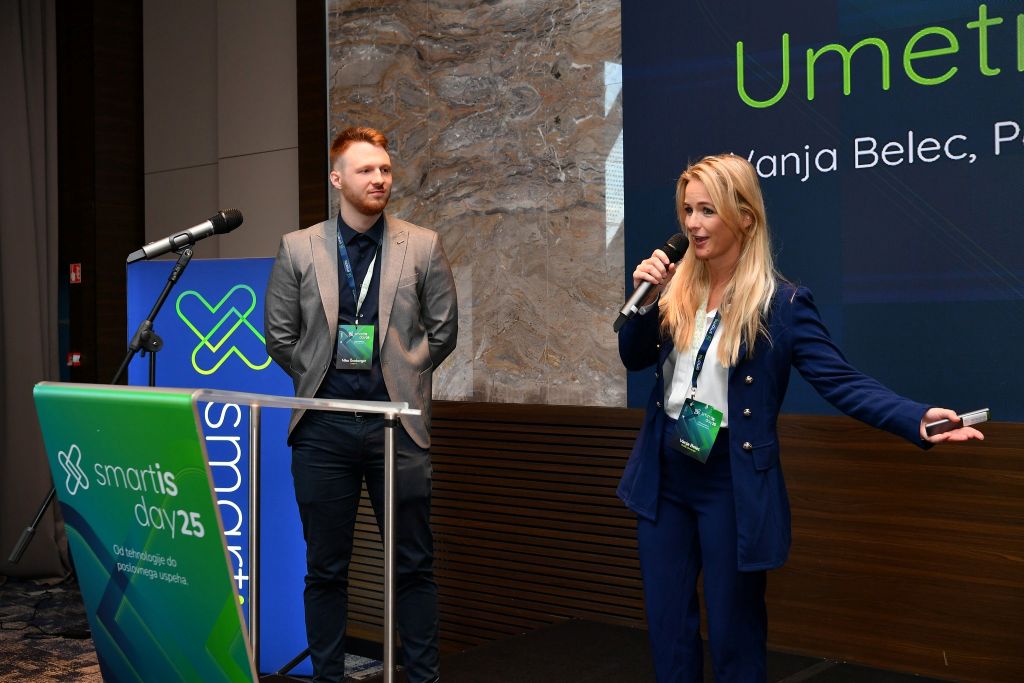 At Smartis Day ’25, Vanja Belec from Pošta Slovenije and Niko Šneberger from Loop AI, specialized in advanced AI solutions, presented the challenges of digitalizing and upgrading the communication platform at Pošta Slovenije. They also showcased concrete figures demonstrating how AI has improved work processes in practice.